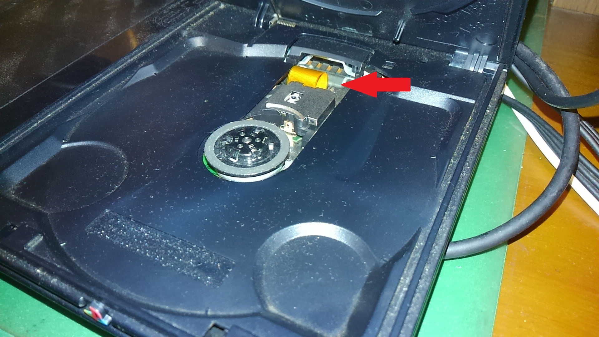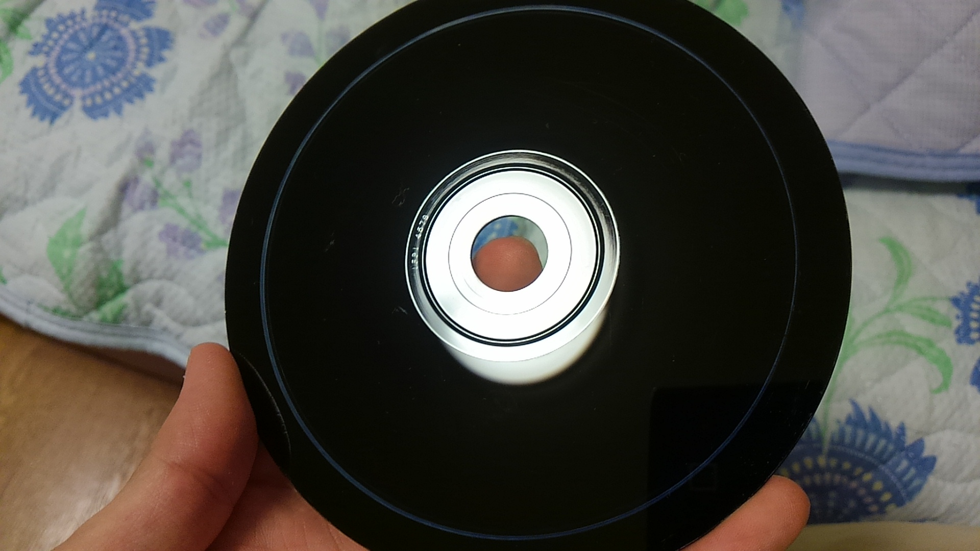 ここの銅線(銅じゃないんだろうけど)に変なクセがついて浮き上がってディスクに接触してしまい、そのままディスクが回転することで綺麗に円形の傷がつくというもの。