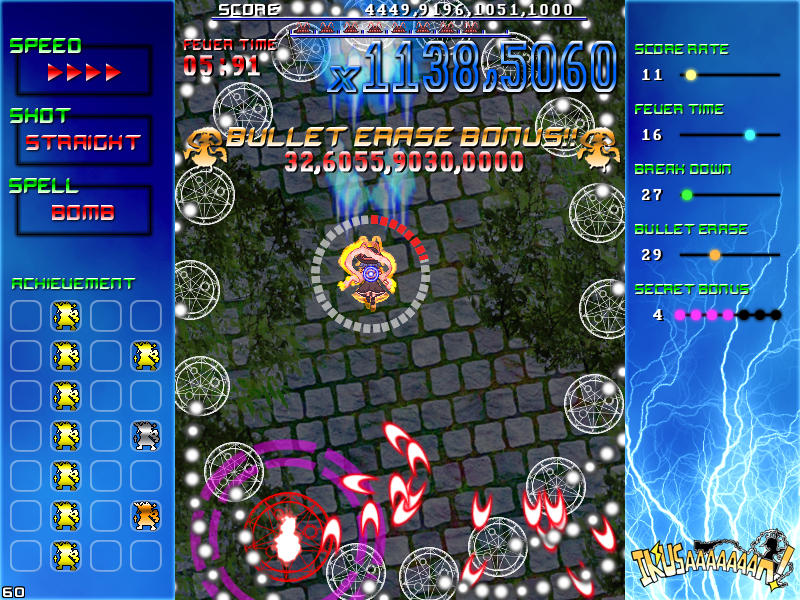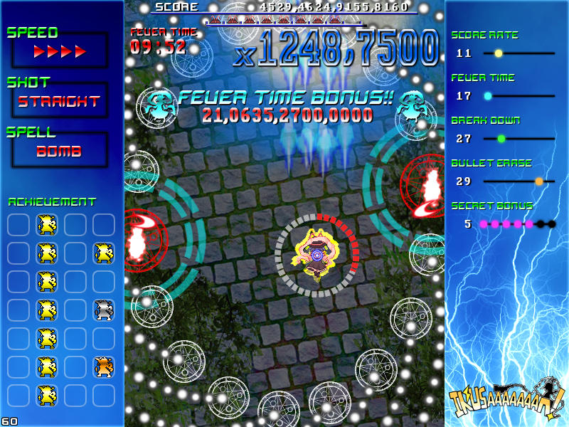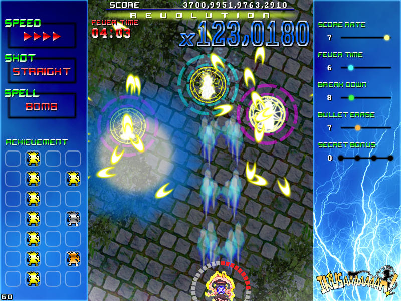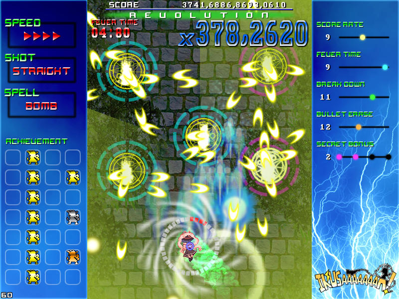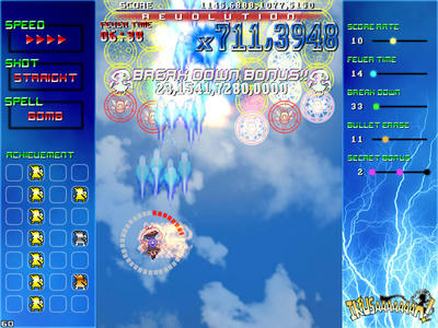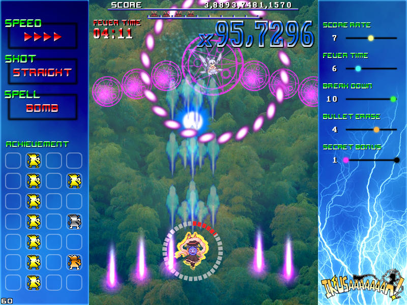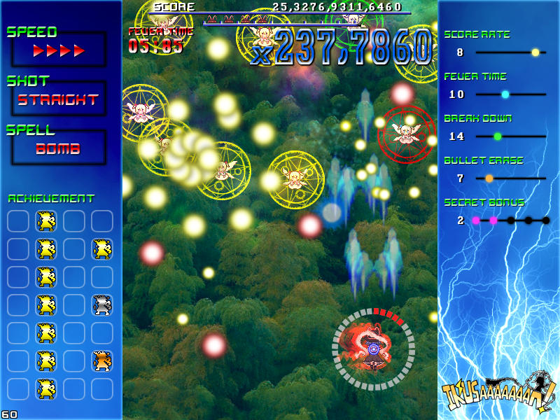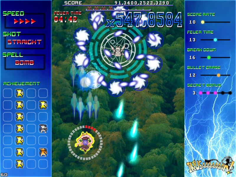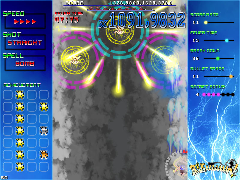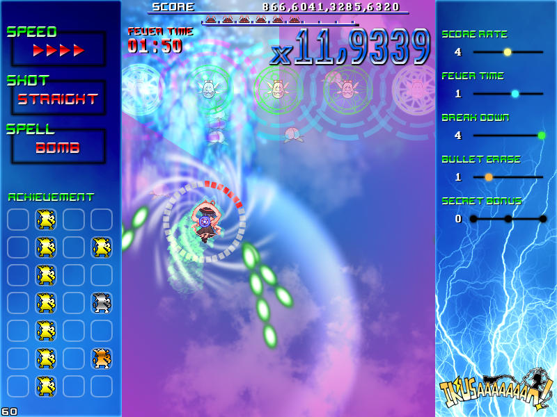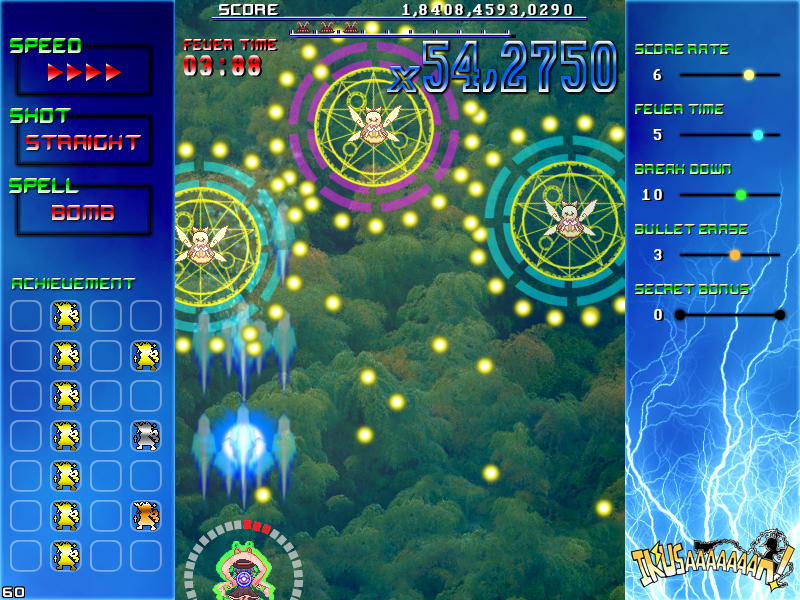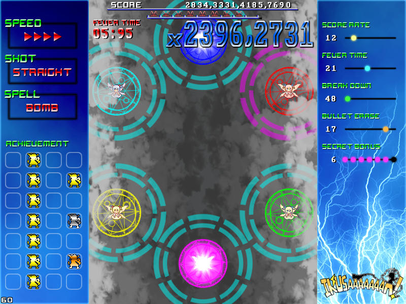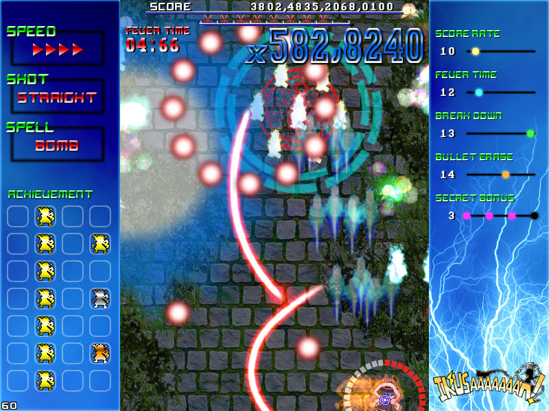 現れる敵を速攻撃破する楽しさ、パターンを覚えてボスの弾幕を攻略する気持ち良さ、楽曲と同期したゲーム展開のスピード感、フィーバー時間が長くなった時の無双感。