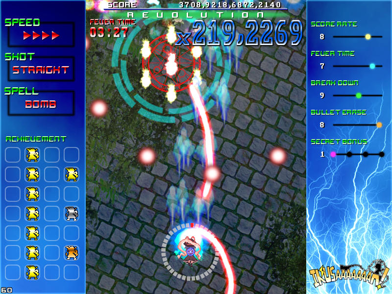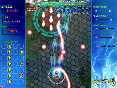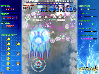 ジャンルは東方二次創作の縦スクロール弾幕STG。任意で発動できるフィーバーシステムが特徴。