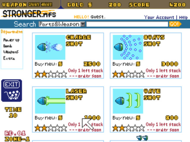 連射機能はショップで買わないと使えず、コンティニューも無く難易度設定もレトロな感じだが、これも作者のこだわりゆえのことだろう。