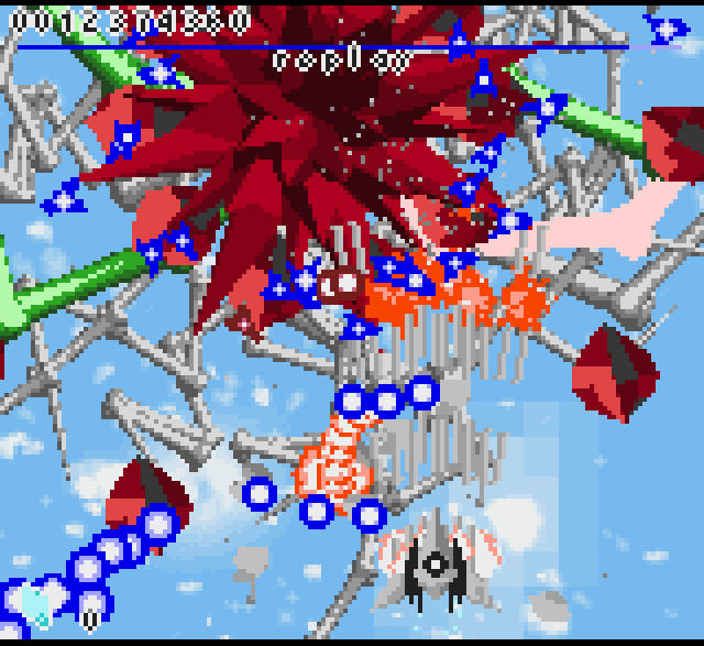 ボスは灰色の戦闘機。赤色のパーツも混じっています。