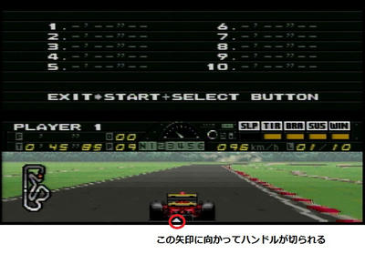 普通のレースゲームなら左キーを押せば左に、右を押せば右に動くのが当然だが、本作は左右キーを押すと自車の下にある矢印が動くようになっている。