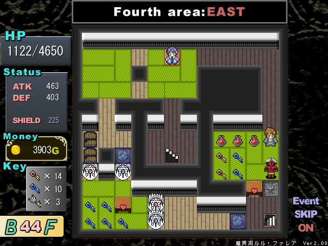赤の薬や緑の薬が手に入る時はまずそちらに向かい、鍵集めやお金稼ぎは強化できなくなってからすれば充分です。
