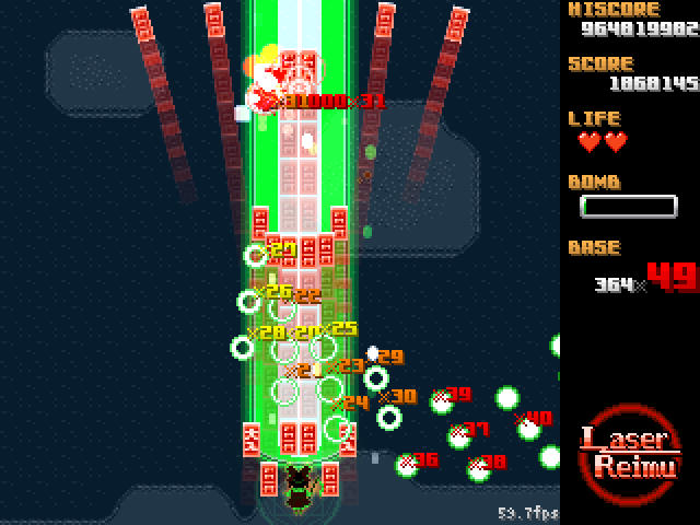 もっと爽快感あって無双できるゲームの方がいいなー、なんてお考えのあなたにお勧めしたいのが、こちらの「LASERREIMU」だ。
