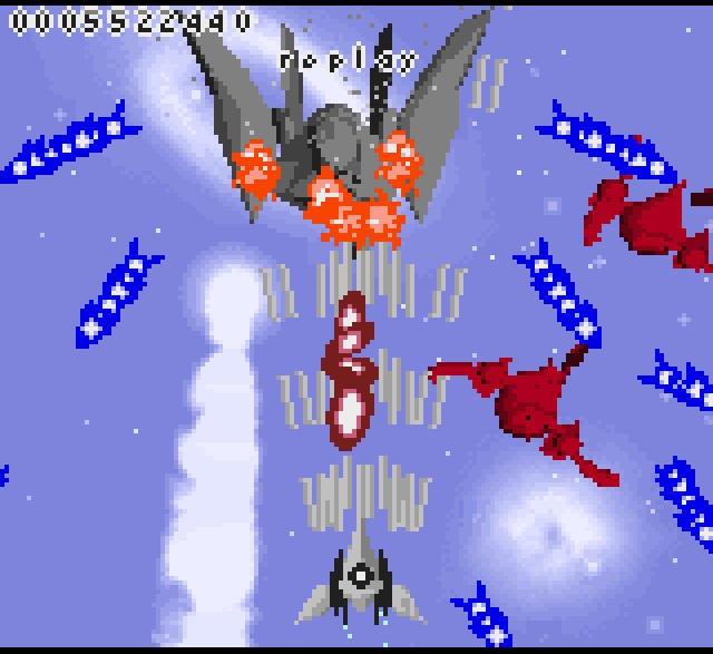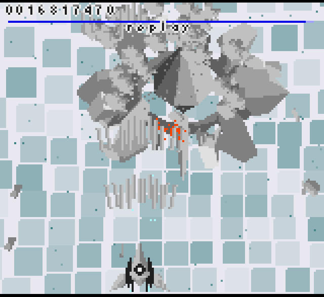 ボスは灰色の戦闘機。赤色のパーツも混じっています。