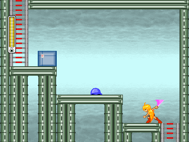 キャラは「ロックマンX」風だけど壁ジャンプは不可能で、ゲームシステム的にはXじゃない普通の「ロックマン」に近い。