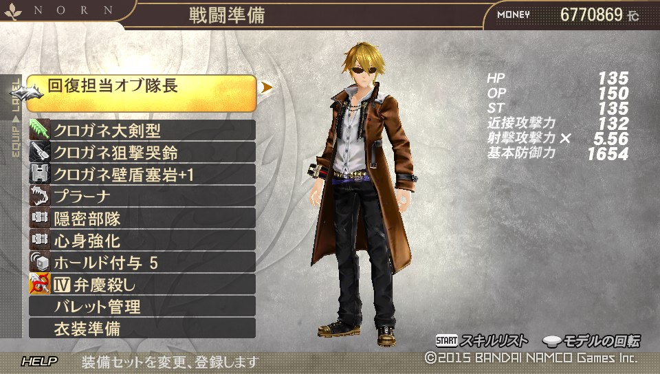 さて、まずはミッションに行く前に装備を整えます。 回復弾の回復量は銃の倍率によらない様なのでスナイパーの種類は別になんでも良かったのですが、せっかくなのでRank15のものを用意しました。